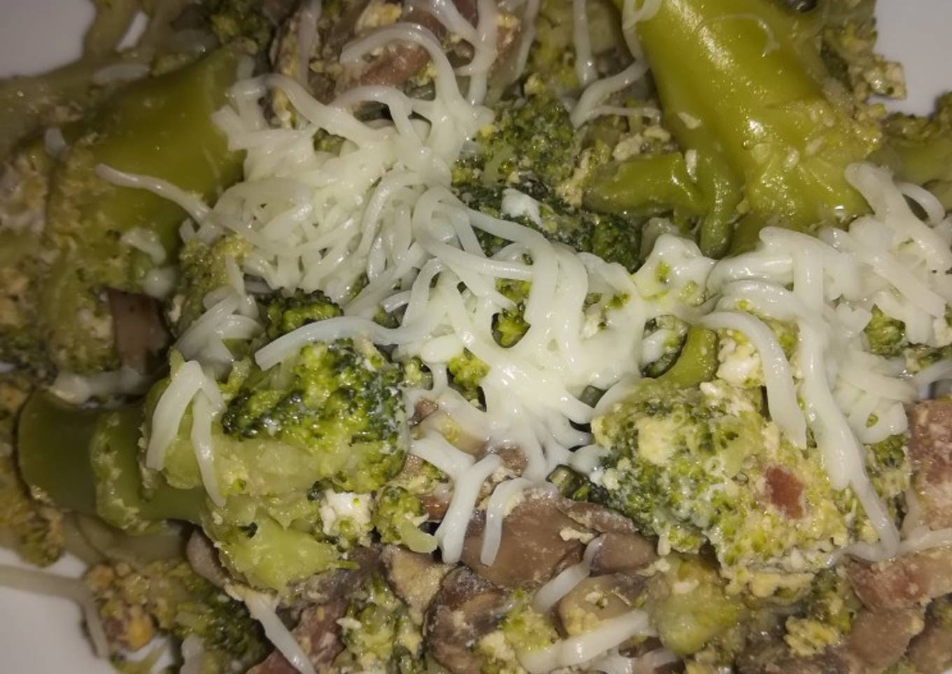 - Una vez cocido el brócoli lo escurrimos y lo echamos en la mezcla del bacon y champiñones