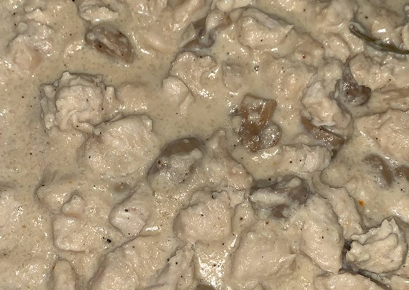 Pollo con nata y champiñones