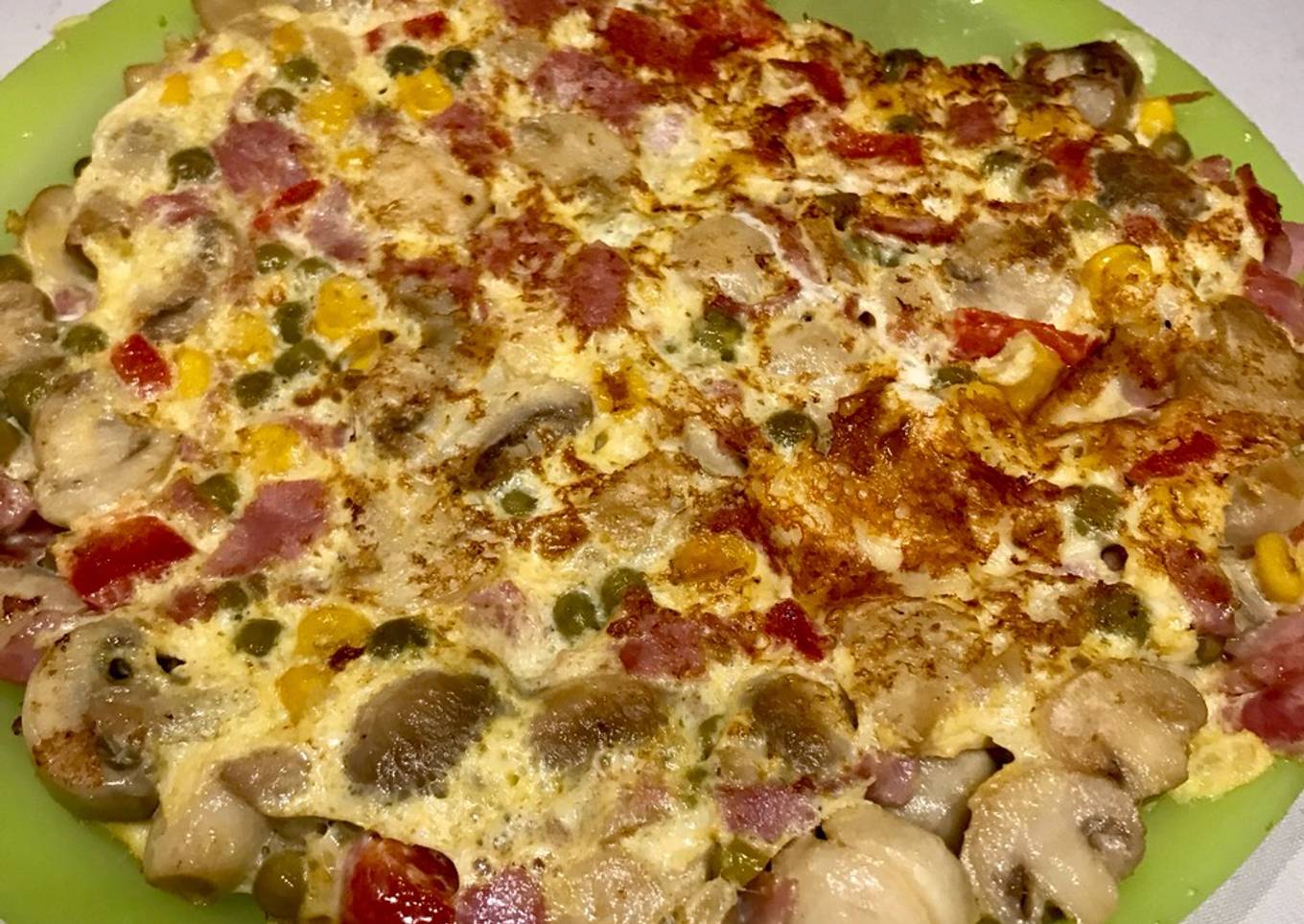 Tortilla multi color (champiñones, choclo, arvejas, y jamón) increíble 😉
